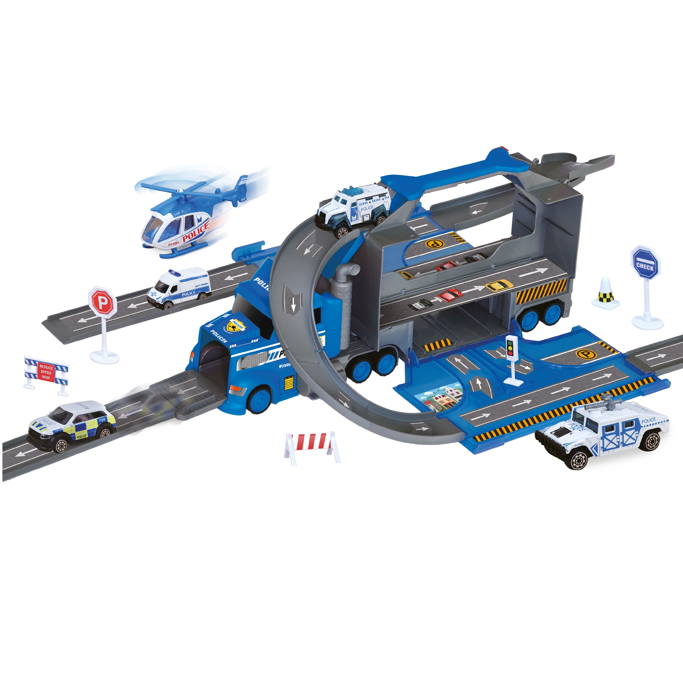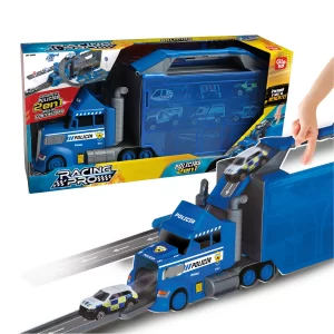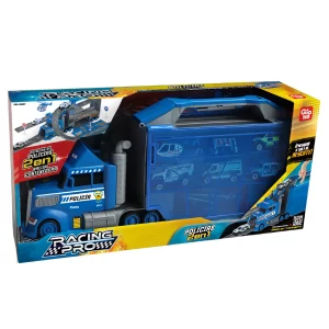 Con la Valija Contenedora 2 en 1 de Racing Pro, la ciudad está siempre protegida. En su versión camión, podés guardar y trasladar los vehículos y al abrirla, se convierte en una pista llena de acción con rampas, calles y accesorios para jugar. Incluye 5 vehículos policiales y todo lo necesario para patrullar, perseguir y mantener el orden. ¡Un set 2 en 1 que combina transporte, colección y diversión en cada misión policial!